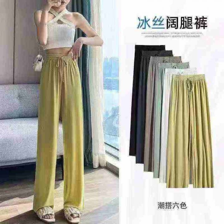 641松紧抽绳冰丝阔腿裤。面料柔软舒适,垂感顺滑。两种面料,裤头有包边和...