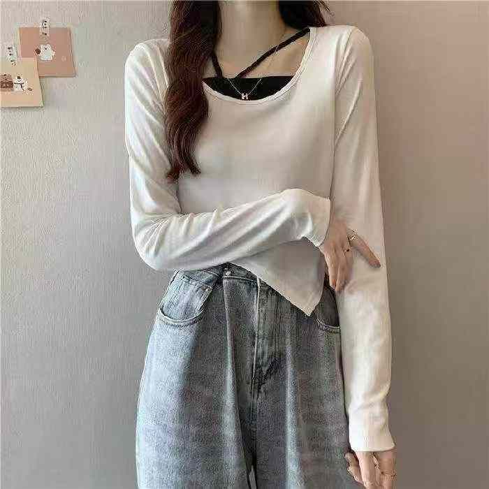 棉质假两件长袖66件7.5,面料柔软舒适高弹力,撞色拼...