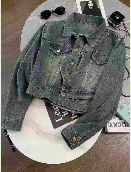 2500件左右2025新款秋季靓妹韩版休闲显瘦小众短款牛仔外套,中山水洗棉!两个图片整款,三个颜色!均码80~135斤,独立包装 !亏本清!25.8福利