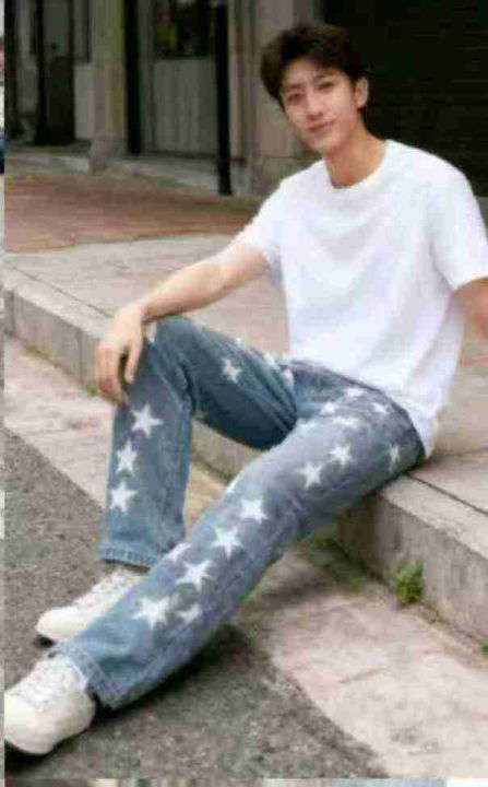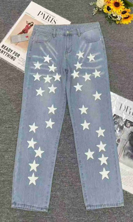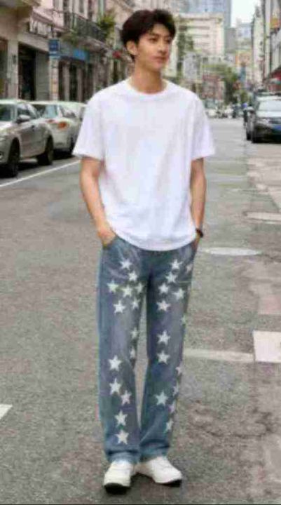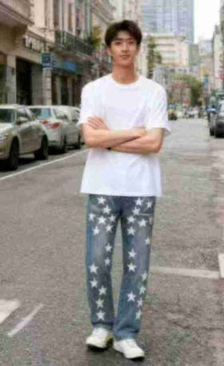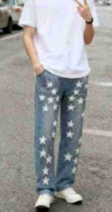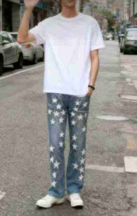 秋季新品洗水棉高级感五角星潮牌直筒男士牛仔裤,独立...