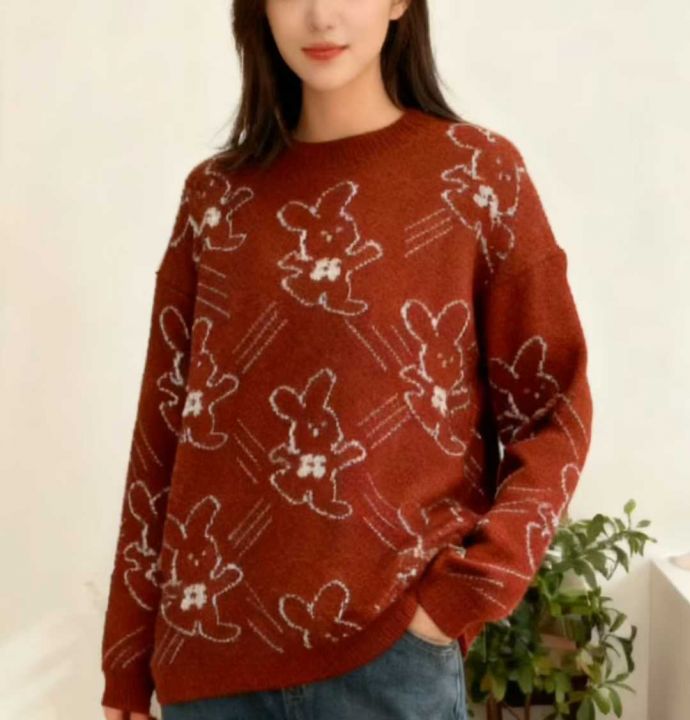 秋冬新款宽松慵懒风百搭卡通提花包芯纱加厚圆领套头毛衣,独立包装,均码面料软糯厚实弹力大,138件,全清7.9元超低价秒杀!