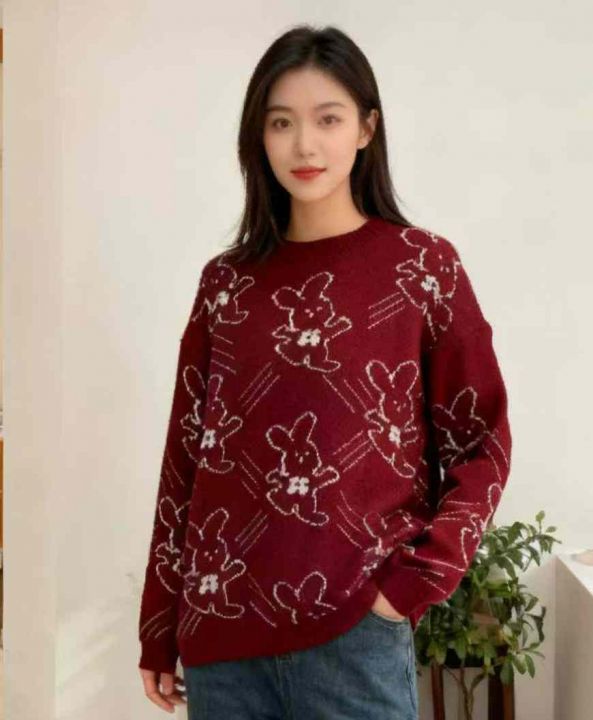 秋冬新款宽松慵懒风百搭卡通提花包芯纱加厚圆领套头毛衣,独立包装,均码面料软糯厚实弹力大,138件,全清7.9元超低价秒杀!