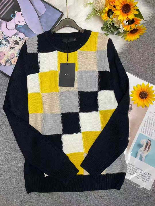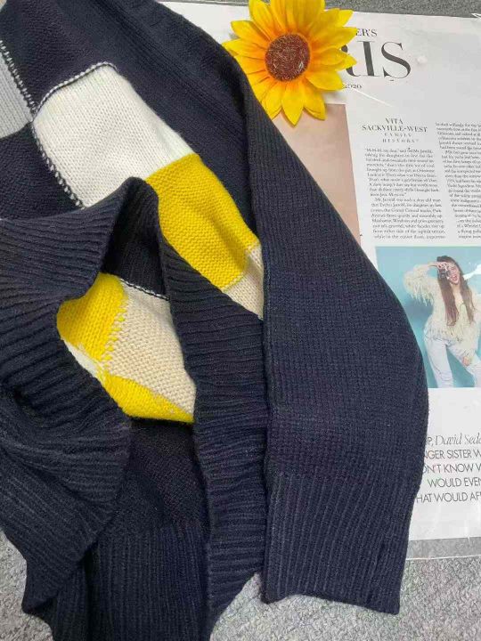 品牌原单撞色方格宽松圆领纯棉套头毛衣,独立包装带吊...