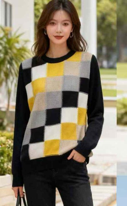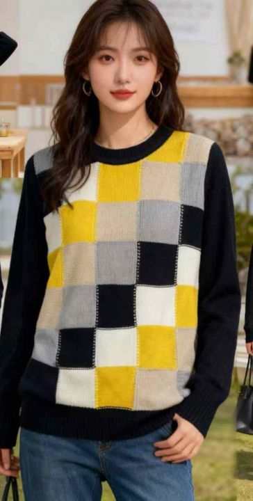 品牌原单撞色方格宽松圆领纯棉套头毛衣,独立包装带吊牌,码数S--XL码,91件,全清6.9元超低价秒杀!