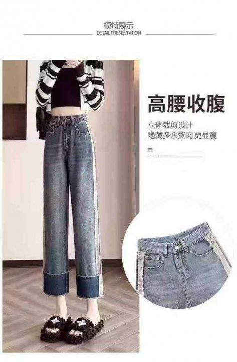 秋冬新款高品质女装洗水棉设计款窄版直筒阔腿牛仔裤,独立包装带吊牌,码数...