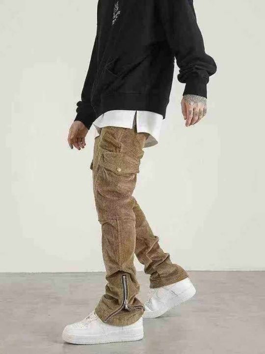 142条\'街复古做旧灯芯绒拉链修身工装裤国潮机能休闲裤,独立包装,码数29-...