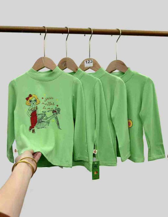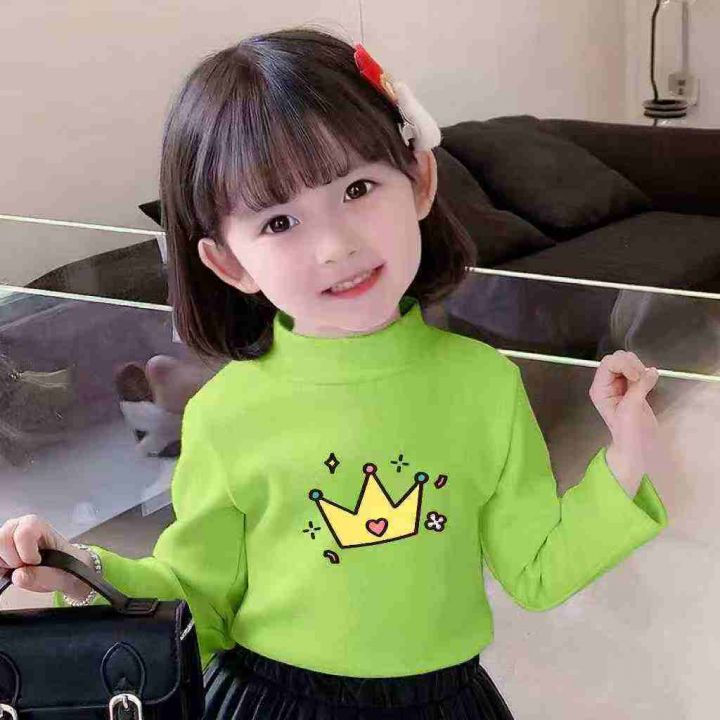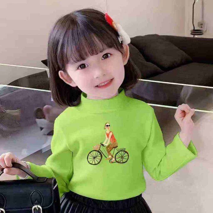 亏本清仓644件儿童半高领印花长袖打底外穿上衣,面料...