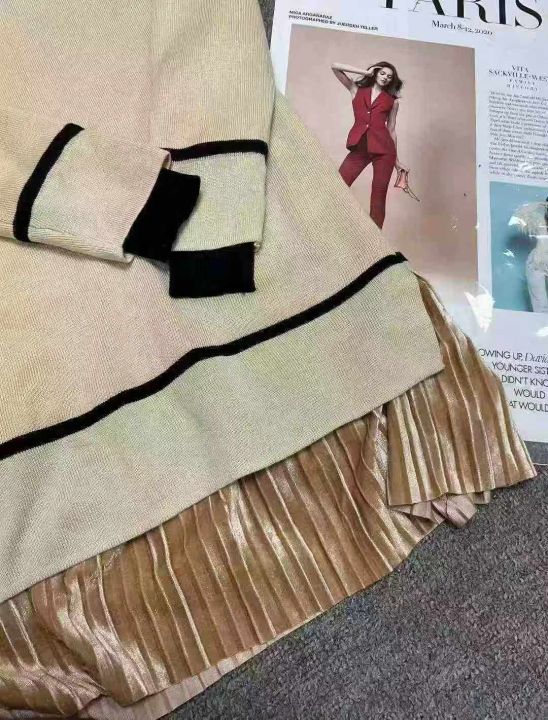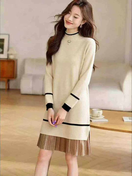冬季新款配大衣中长款加绒加厚拼接宽松半高领针织连衣...