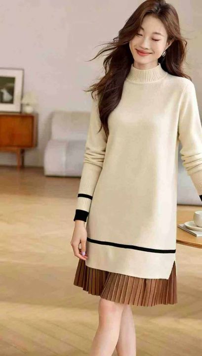 冬季新款配大衣中长款加绒加厚拼接宽松半高领针织连衣裙,独立包装带吊牌,均码面料软糯厚实弹力大,50件左右,全清8.9元超低价秒杀!