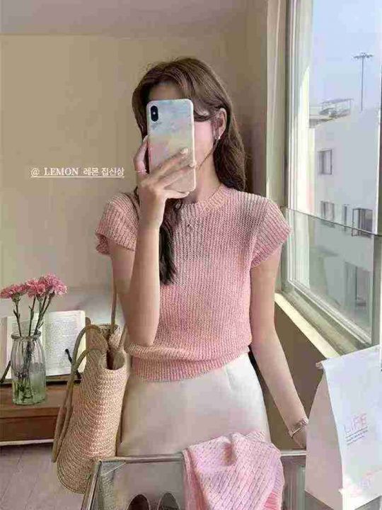 夏季新款法式小香风甜美减龄圆领针织衫,独立包装,均码面料柔软舒适弹力大...