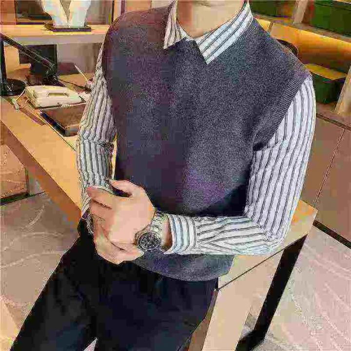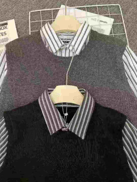 男装马甲毛衣➕衬衫两件套☕️假两件翻领毛衣男套头秋...