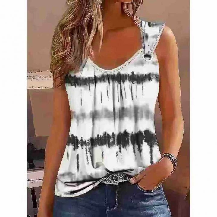 女士夏季休闲扎染印花无袖背心 , 数量140件,S-2XL码...