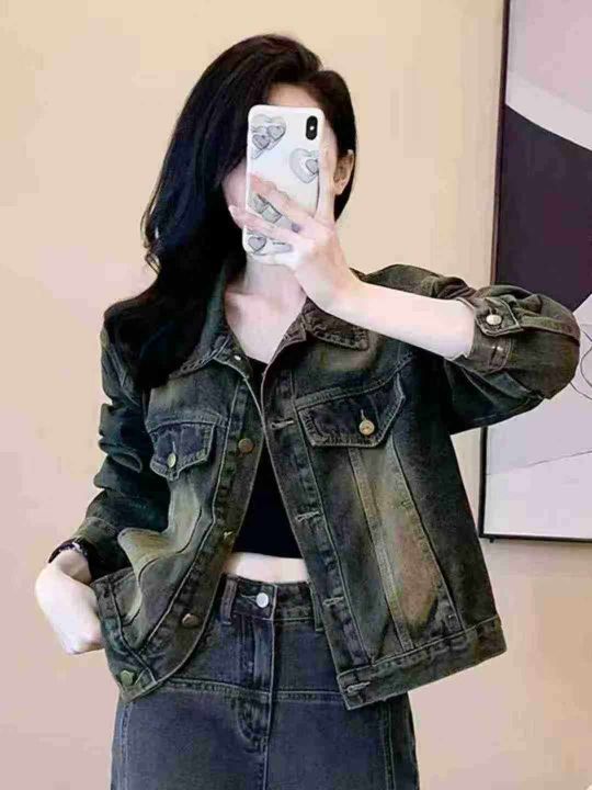 2500件左右2025新款秋季靓妹韩版休闲显瘦小众短款牛仔外套,中山水洗棉!两个图片整款,三个颜色!均码80~135斤,独立包装 !亏本清!25.8福利