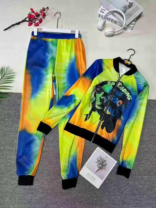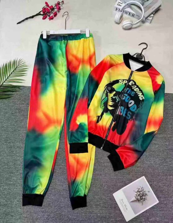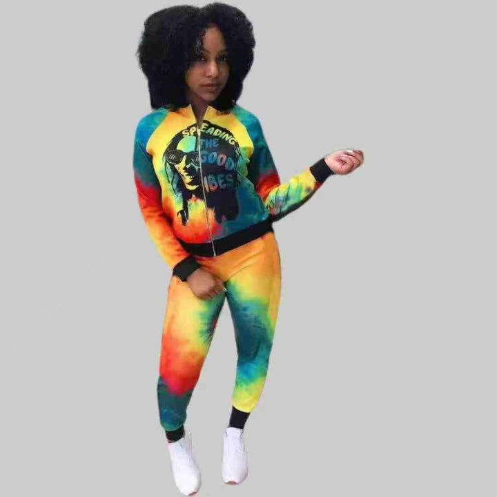 WISH欧美女装个性印花扎染街头运动休闲两件套,整款两色,数量240套左右,码数S-2XL,品质好,有独立包装。
