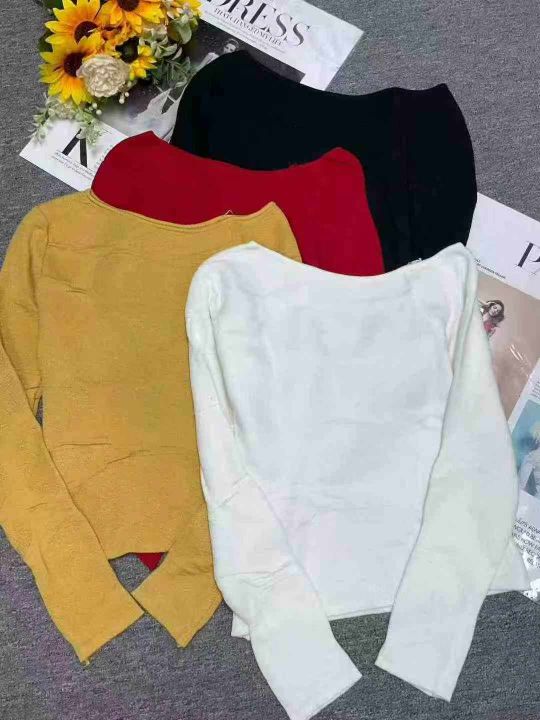 早秋新款纯欲风高级感穿搭气质斜肩长袖包芯纱套头毛衣...