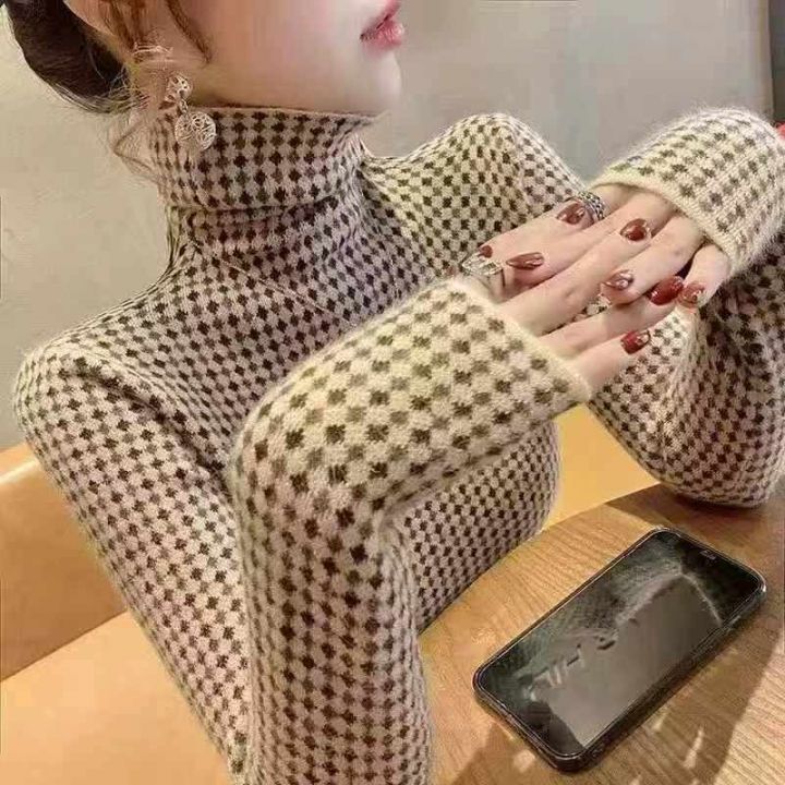 品牌原单冬季千鸟格加厚款包芯纱高领套头毛衣,独立包装带吊牌,均码面料软...