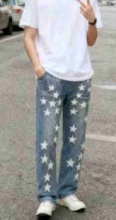 秋季新品洗水棉高级感五角星潮牌直筒男士牛仔裤,独立...