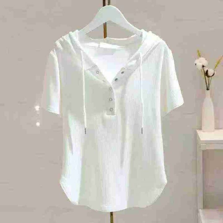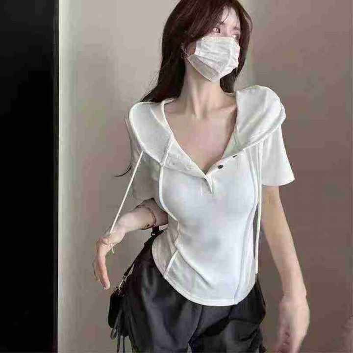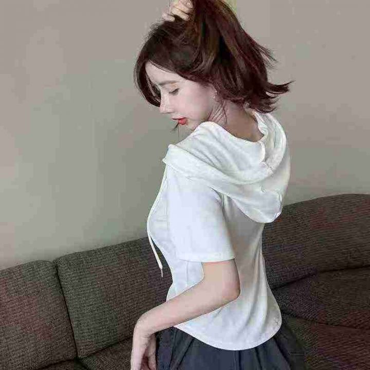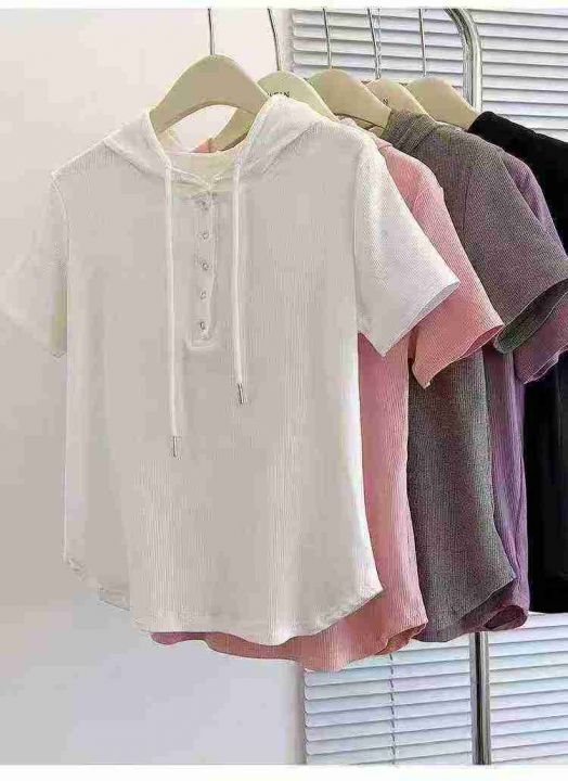 捡漏100件不规则连帽上衣打底衫夏季洋气修身显瘦短袖t恤女,独立包装,码数1-4码,货号1025#57