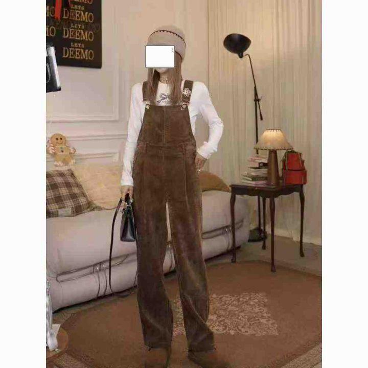 美式复古学院风灯芯绒显瘦阔腿裤新款百搭连体背带裤潮...