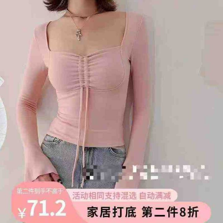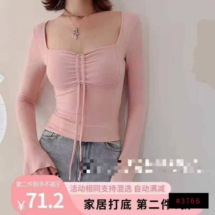 [月亮]:7.5清177件(不分货)[月亮]:纯欲系带不规则袖口辣妹长袖上衣[月...
