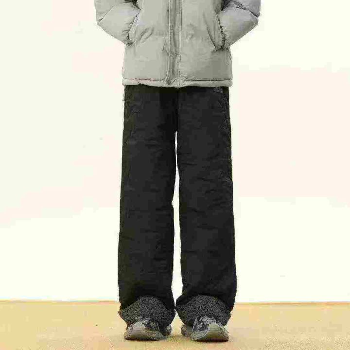 防寒休闲羊羔保暖裤男女冬季潮宽松葫芦纹防水直筒裤加...