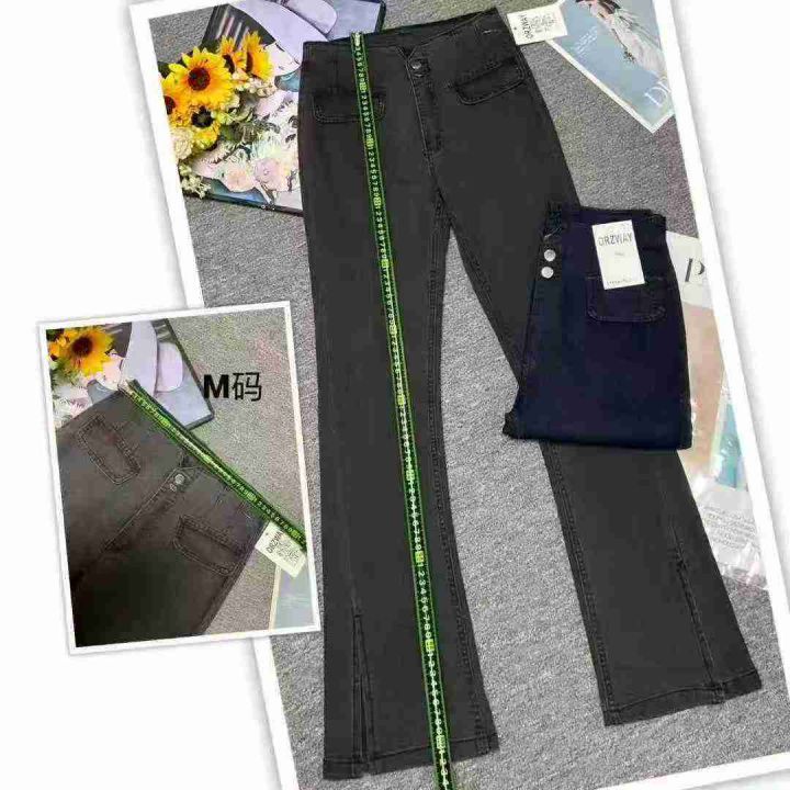 秋季新品高弹力洗水棉网红爆款牛仔开叉微喇叭牛仔裤,...