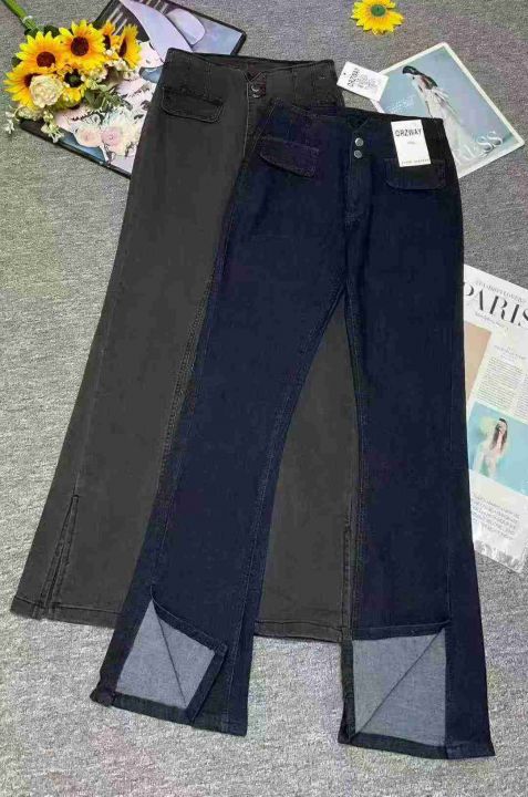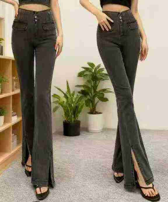 高弹力网红高腰喇叭开叉牛仔裤女,单款四色,独立包装带吊牌,码数25-32,...
