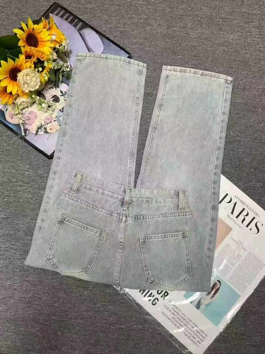 秋冬新款洗水棉网红复古浅色直筒阔腿牛仔裤,独立包装...
