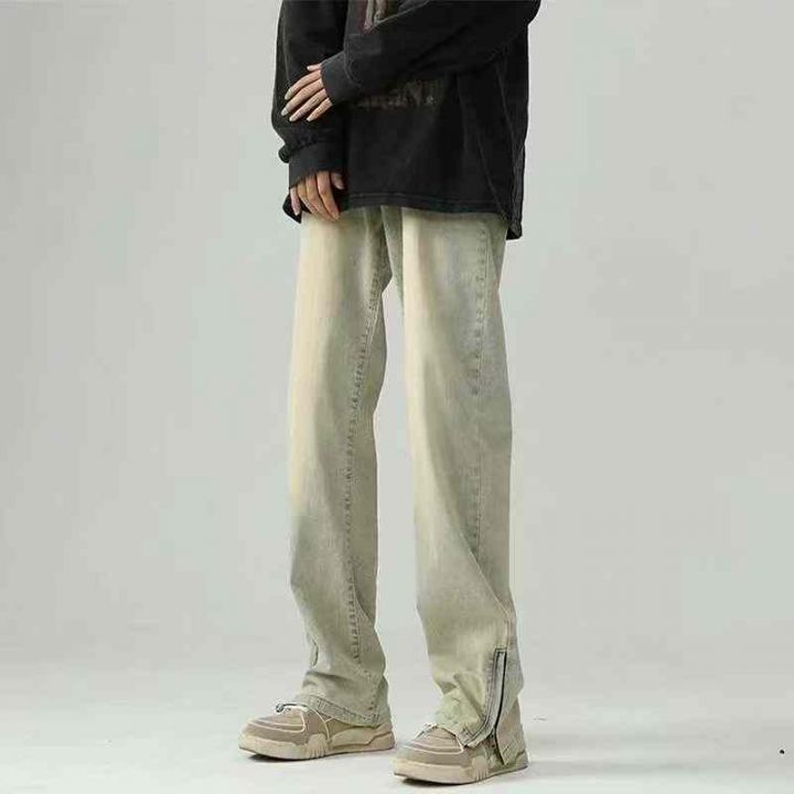 秋冬新款男女同款复古做旧洗水棉黄泥色牛仔裤,独立包装带吊牌,码数XS-XL...