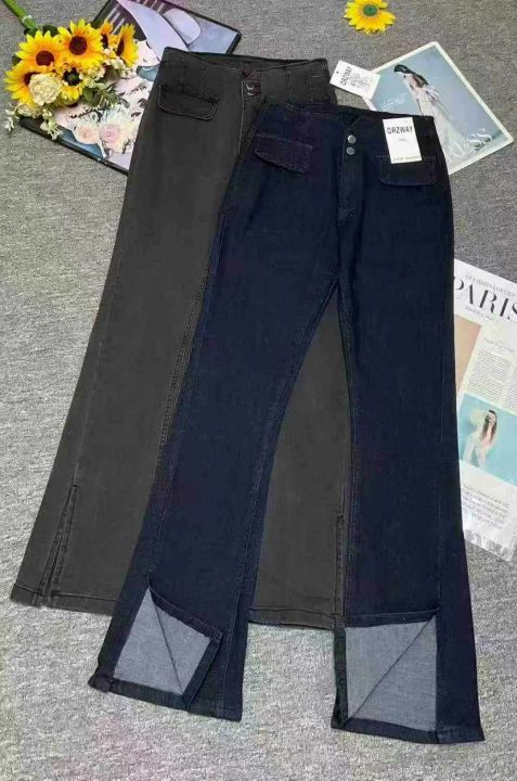 秋季新品高弹力洗水棉网红爆款牛仔开叉微喇叭牛仔裤,...