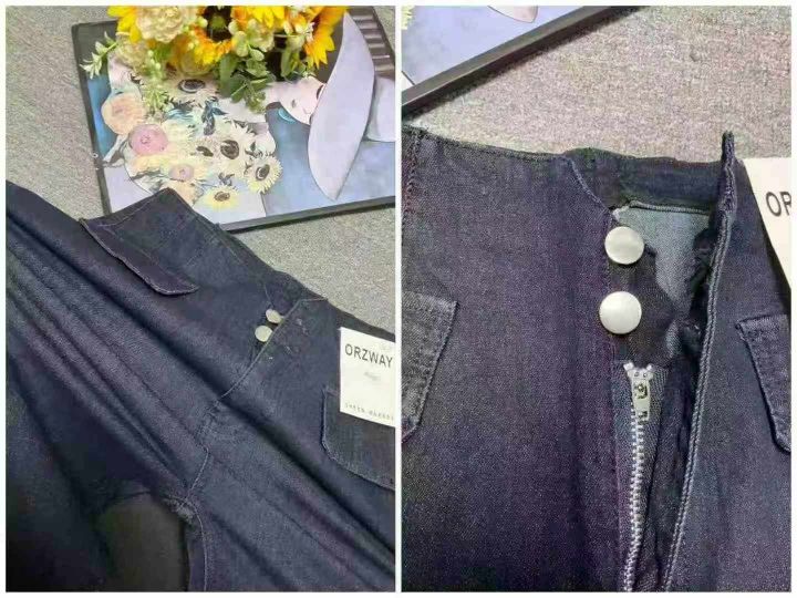 秋冬新款黑色宽松百搭排扣设计款洗水棉牛仔直筒烟管裤,独立包装带吊牌,码...
