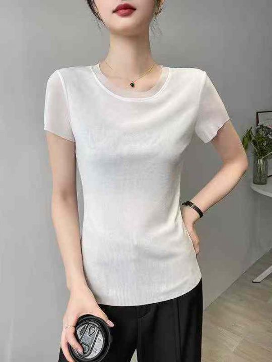 清仓处理2.8128件白色t恤短袖女夏季薄款独特网纱内搭...