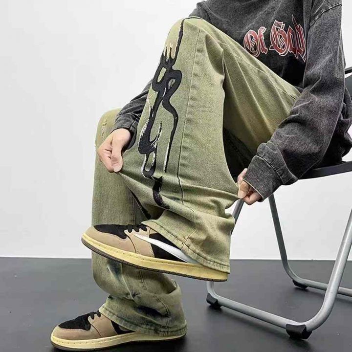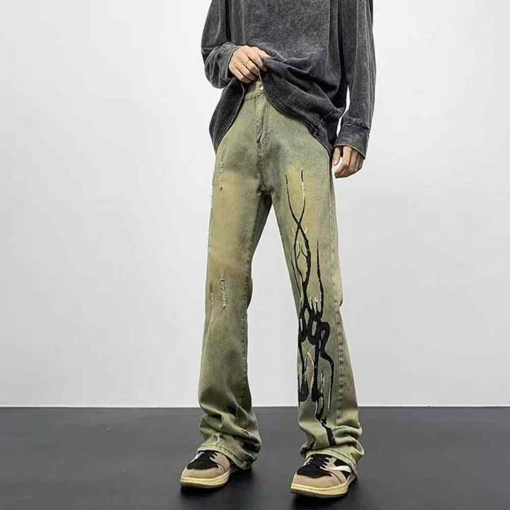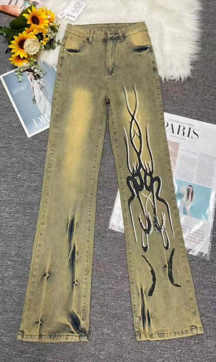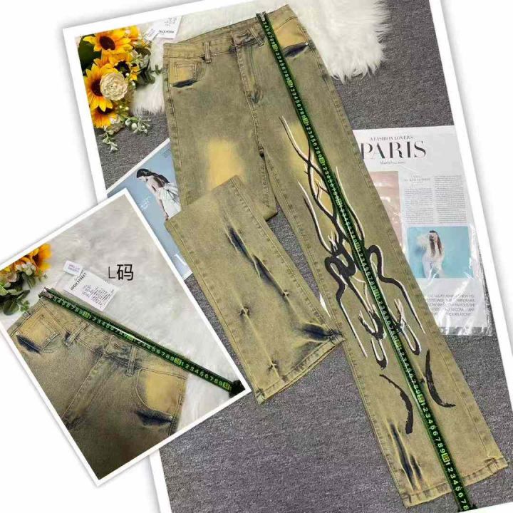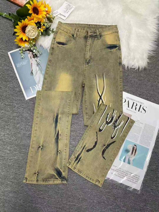秋季新品高弹力洗水棉男女同款复古黄泥色牛仔裤,独立...