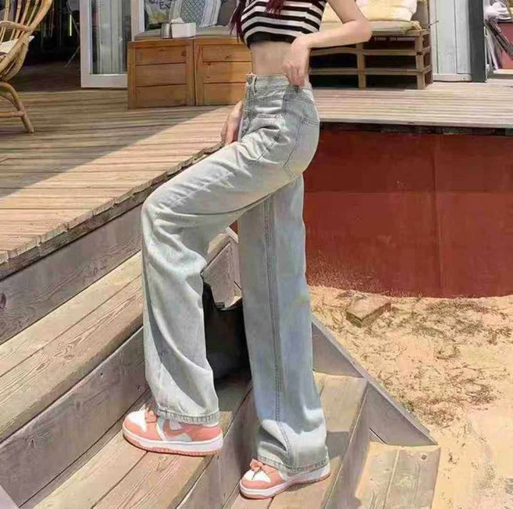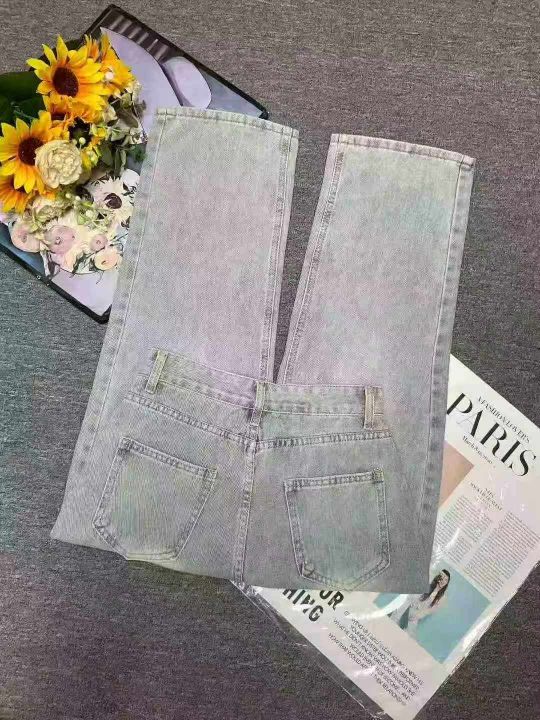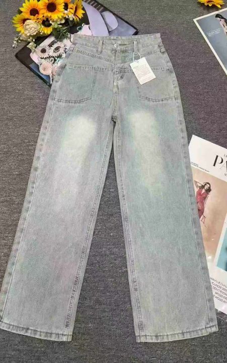 秋冬新款洗水棉网红复古浅色直筒阔腿牛仔裤,独立包装...