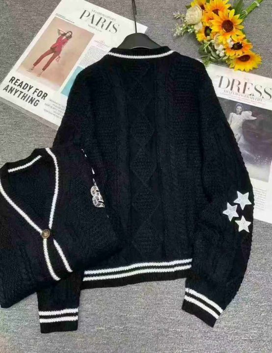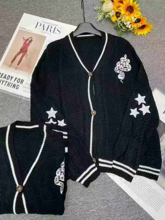 秋冬新款宽松慵懒风刺绣麻花设计款毛衣开衫,独立包装...