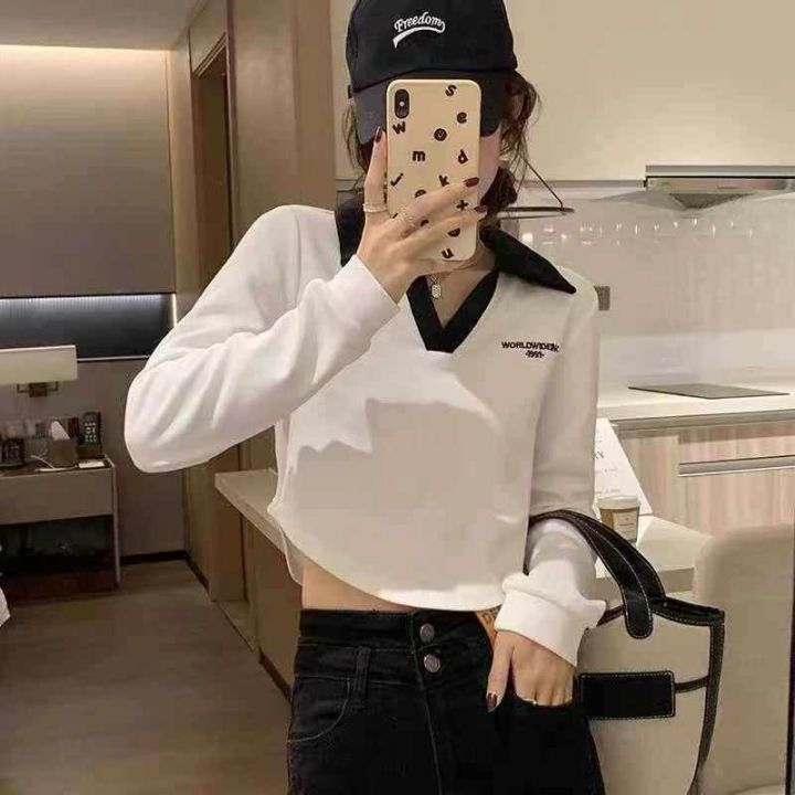 秋季新品撞色刺绣字母小清新百搭polo领针织套头毛衣,独立包装,均码面料柔...