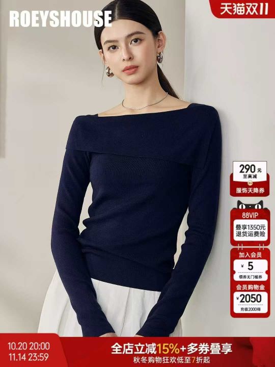 全清18.8,整款罗衣法式一字领绵羊毛针织衫女2025秋气...