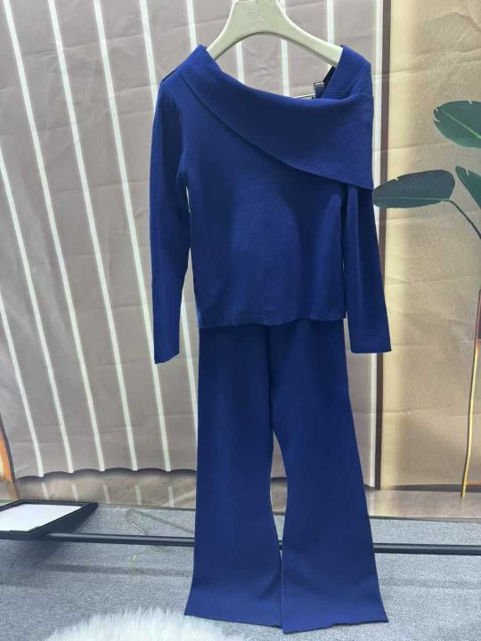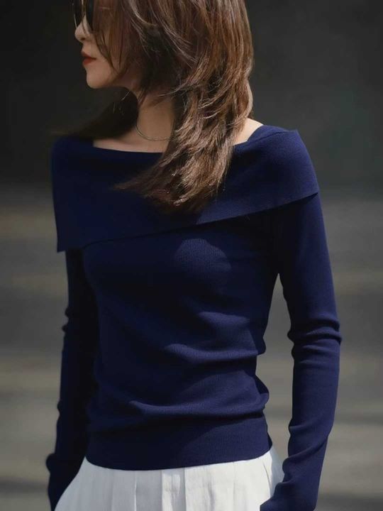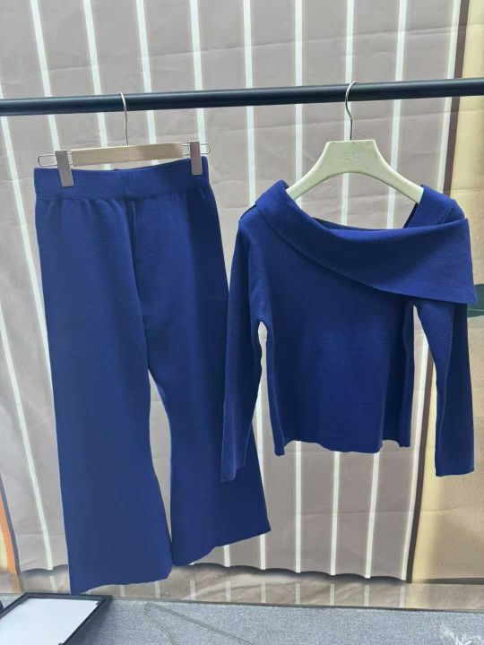 全清18.8,整款罗衣法式一字领绵羊毛针织衫女2025秋气质藏蓝色修身套装,码数M到XL,共39套,不分货