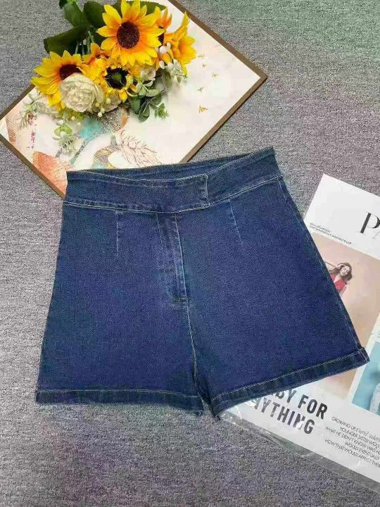 夏季新款弹力修身显瘦辣妹深蓝色高腰牛仔短裤,独立包装,码数S- 3XL码,12...