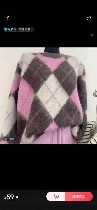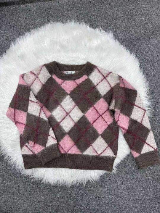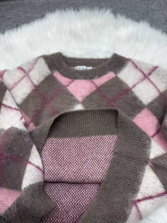 全清10.9,整款高级感软糯菱格粉色毛衣女秋冬宽松显瘦...