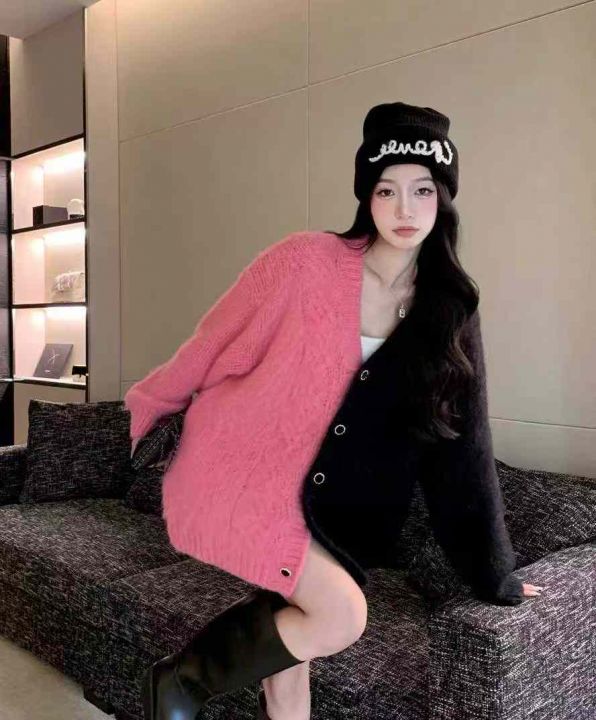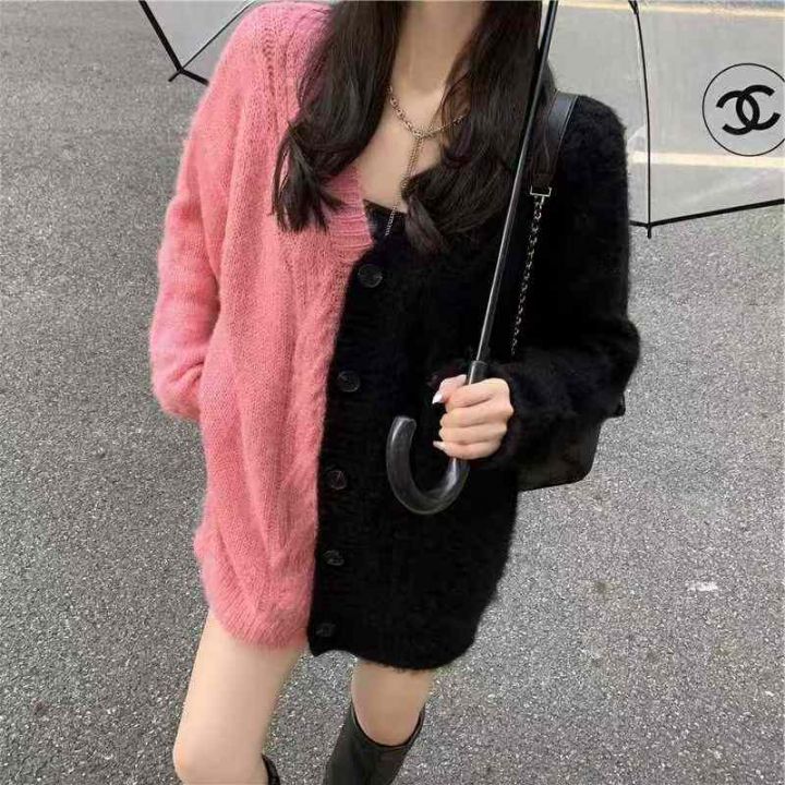 秋冬新款宽松撞色加厚款港风设计款毛衣开衫外套,独立...