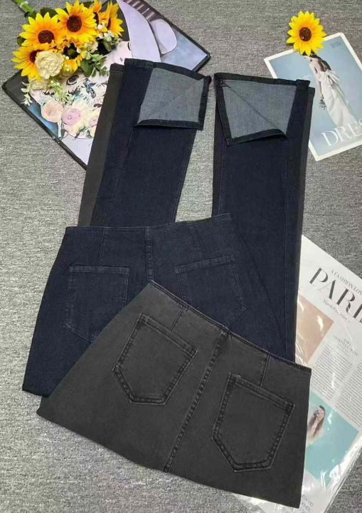秋季新品高弹力洗水棉网红爆款牛仔开叉微喇叭牛仔裤,...