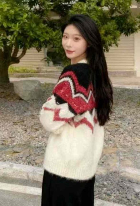 秋冬新款高品质宽松小香风加厚款水貂毛拼包芯纱提花毛...
