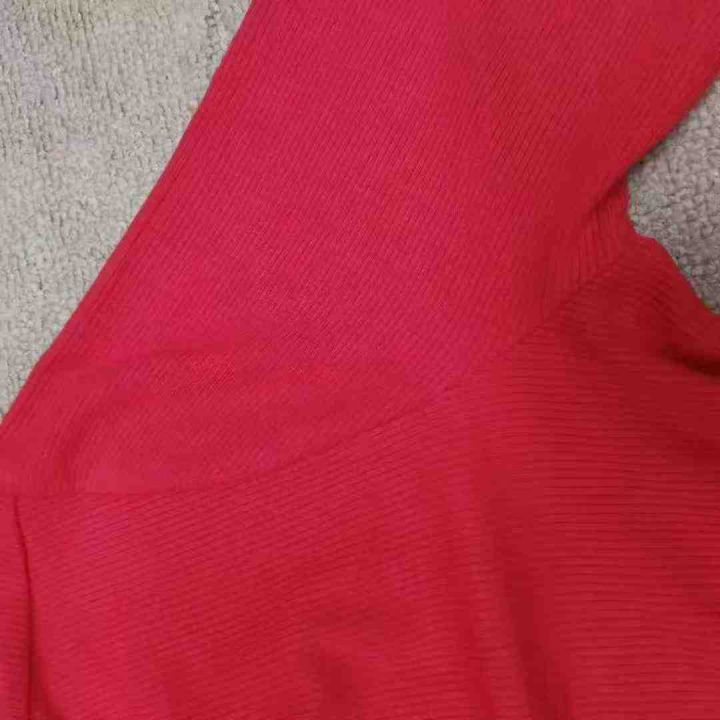 外贸原单春秋女士开衫提花西瓜红半袖中袖V领修身收腰百搭针织衫,高弹力,...
