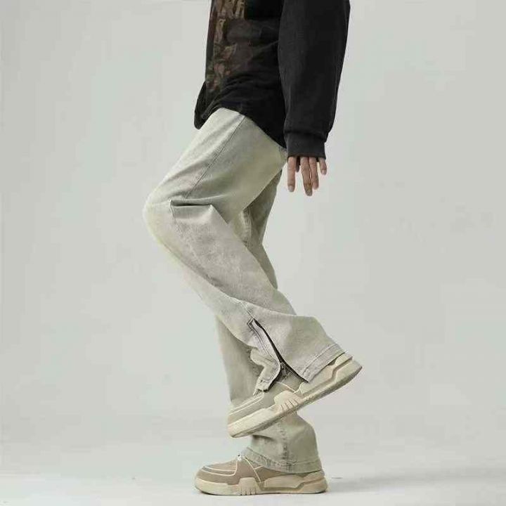 秋冬新款男女同款复古做旧洗水棉黄泥色牛仔裤,独立包...
