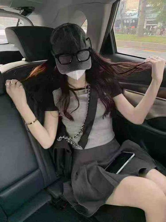夏季新款辣妹插肩拼接撞色纯欲美式灰色针织T桖,独立包装,均码面料柔软舒...