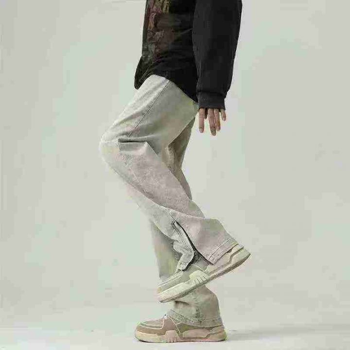 秋冬新款男女同款复古做旧洗水棉黄泥色牛仔裤,独立包...