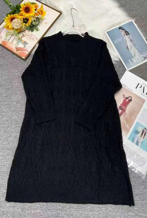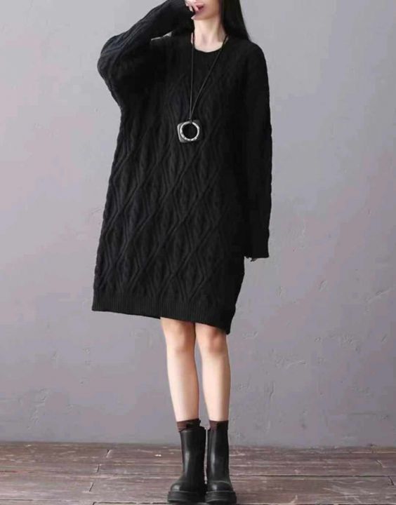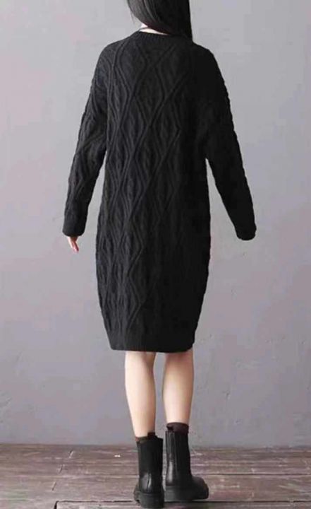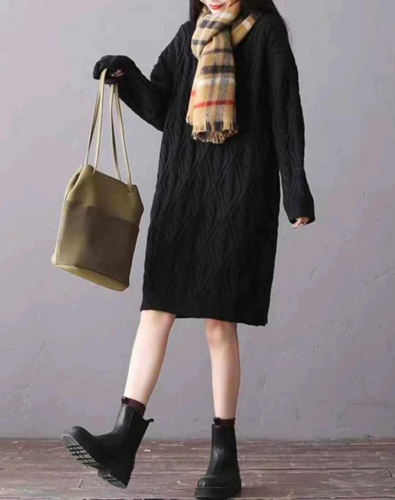 秋冬新款宽松慵懒风法式麻花加厚毛衣连衣裙,独立包装...