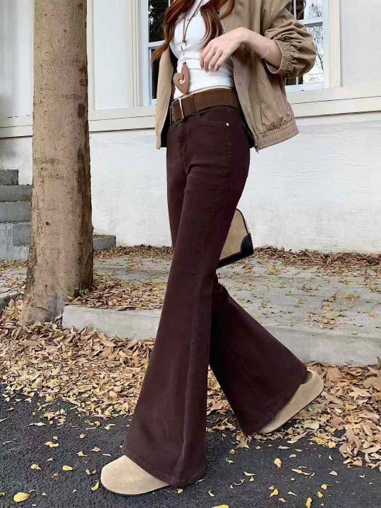 秋季新品高弹力洗水棉复古微喇叭牛仔裤,独立包装带吊...