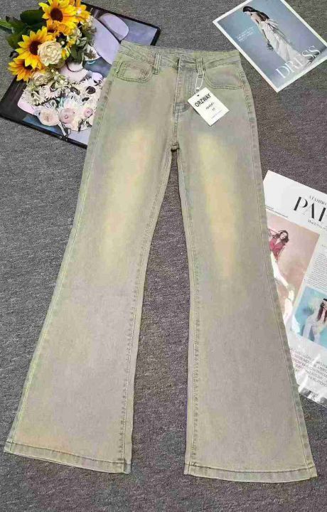 秋冬新款高品质网红爆款高弹力复古喇叭牛仔裤,独立包...